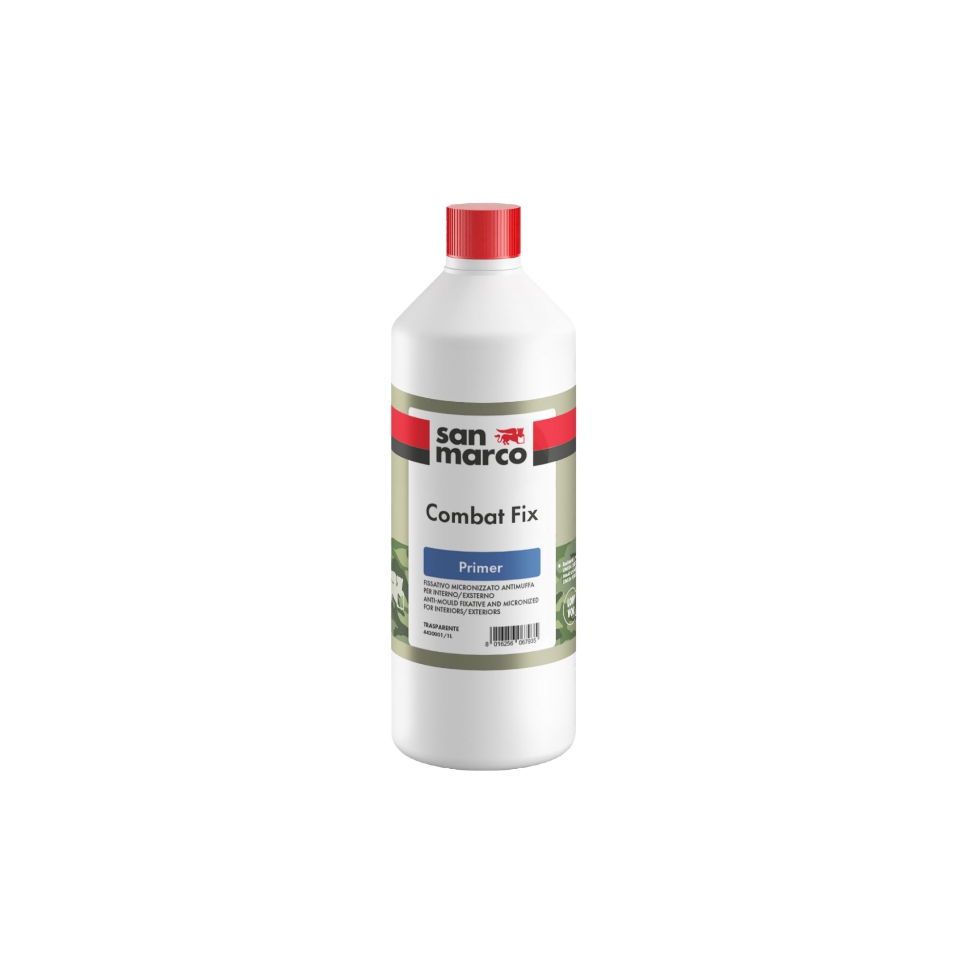 COMBAT FIX è un fissativo antimuffa per consolidare e preparare le pareti murali prima della tinteggiatura. Si applica all’interno o all’esterno su intonaci sia nuovi che vecchi, superfici in calcestruzzo, gesso e cartongesso. COMBAT FIX è particolarmente indicato nel caso in cui siano presenti tracce di muffa o se si desidera prevenirne la formazione. Perfetto nel caso di lievi infestazioni o per potenziare e prolungare l’effetto della successiva pittura antimuffa.